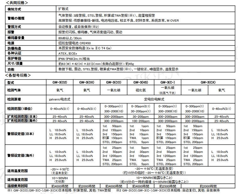 ①小巧&輕量 ② 多樣化的6種類產(chǎn)品 ③ 搭載長期穩(wěn)定性優(yōu)良的R型傳感器,傳感器質(zhì)保3年 ※因隔膜伽伐尼電池式傳感器不是R型傳感器,質(zhì)保為1年 ④ 具備3段報警 ⑤ 一鍵校正