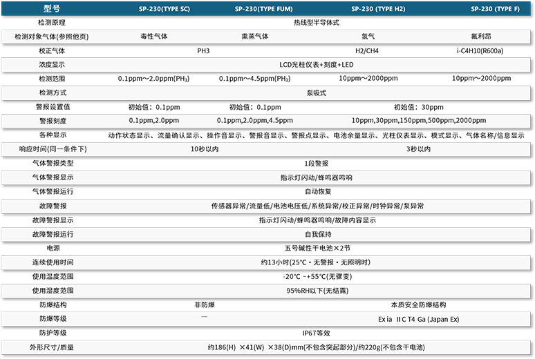 SP-230 系列可快速準確地檢測出微量氣體泄漏,小型輕量且結實耐用,內置過濾器,傳感器耐用性得到提升SP-230致力于為社會支柱的工人們提供支持,共同創造可持續發展未來。