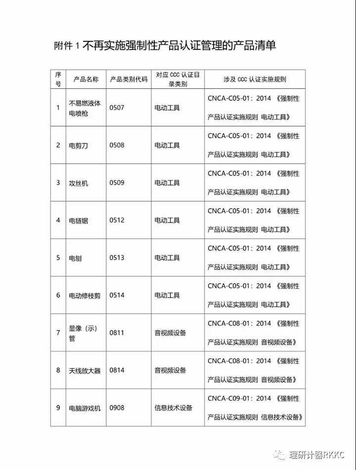 以下附上不再實施強制性產品認證管理的產品清單: