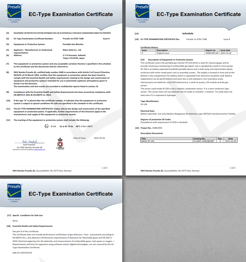 ATEX証 SP-220 Presafe 15ATEX7188 Issue No.0