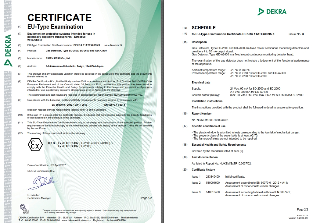 ATEX証 SD-2500,SD-2600,GD-A2400 DEKRA11ATEX0095X-Issue No.3