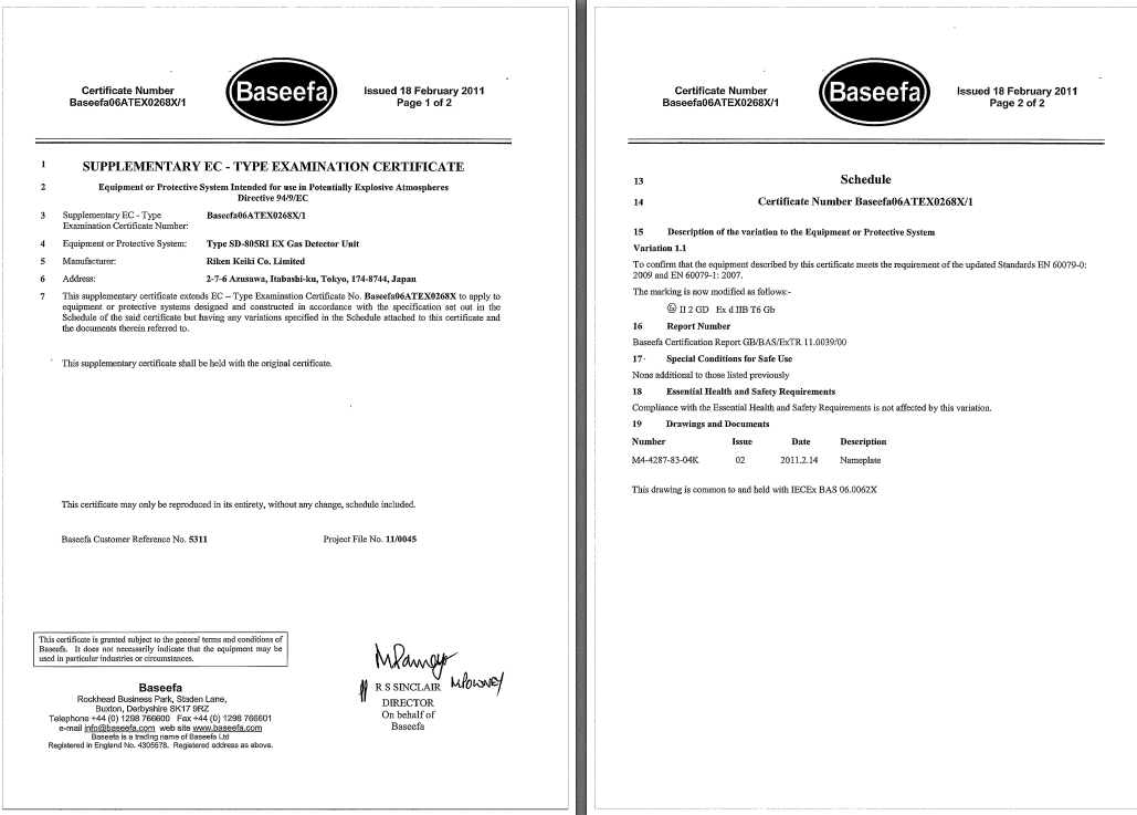 ATEX証 SD-805EC Baseefa09ATEX0270X_1
