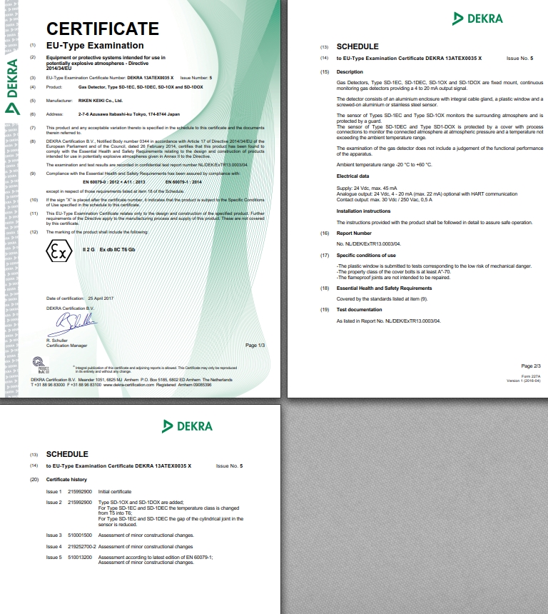 ATEX証 SD-1EC,SD-1DEC,SD-1OX,SD-1DOX DEKRA13ATEX0035X Issue No.5
