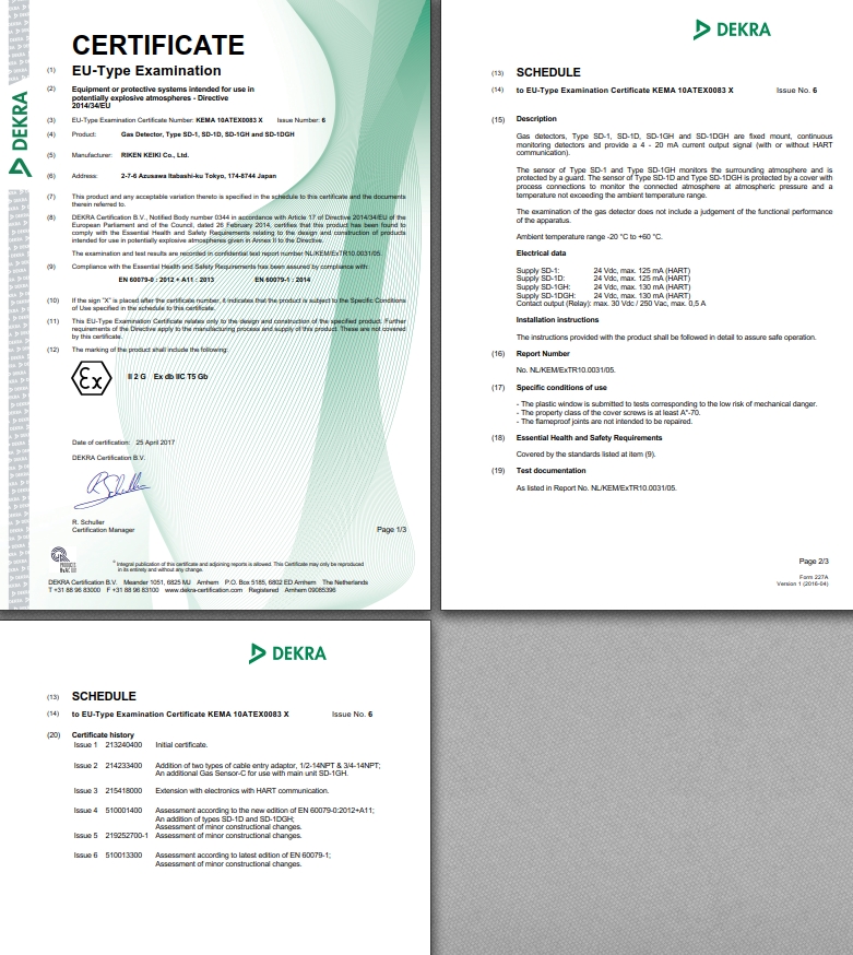 ATEX証 SD-1,SD-1D,SD-1GH,SD-1DGH KEMA10ATEX0083X Issue No.6