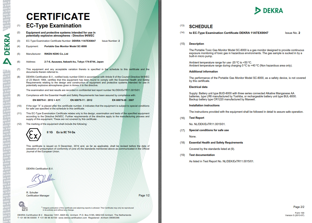 ATEX証 SC-8000 DEKRA11ATEX0047 Issue No.2