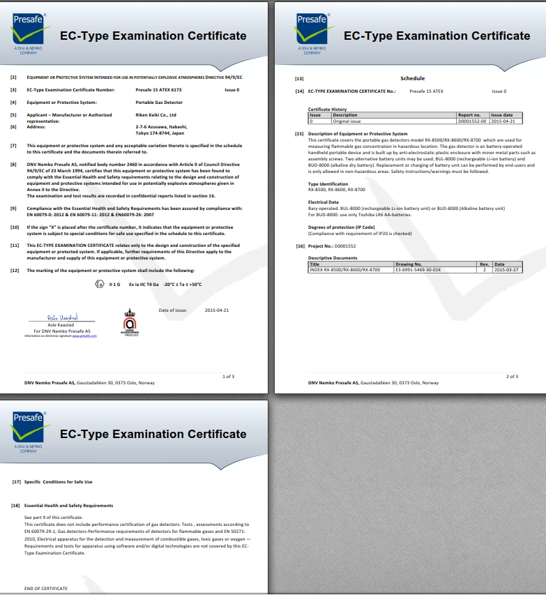 ATEX証 RX-8500,RX-8700 Presafe15ATEX6173 Issue No.0
