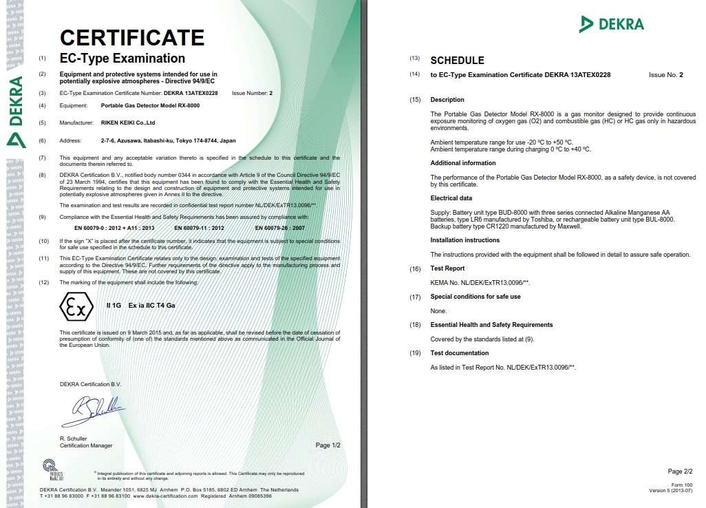 ATEX証 RX-8000 DEKRA13ATEX0228 Issue No.2