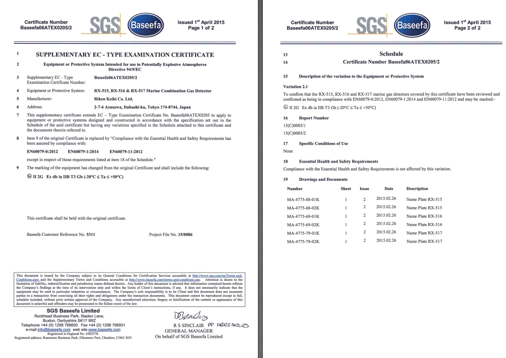 ATEX証 RX-415,OX-415 Baseefa05ATEX0101_3