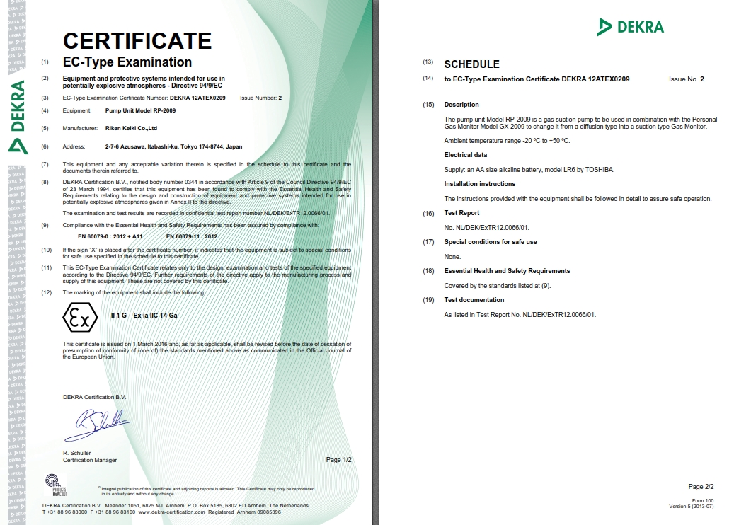 ATEX証 RP-2009 DEKRA12ATEX0209 Issue No.2