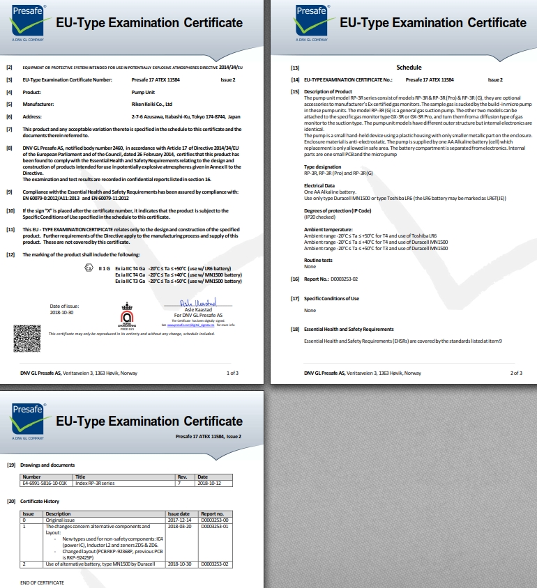 ATEX証 RP-3R Presafe 17ATEX11584 Issue No.2
