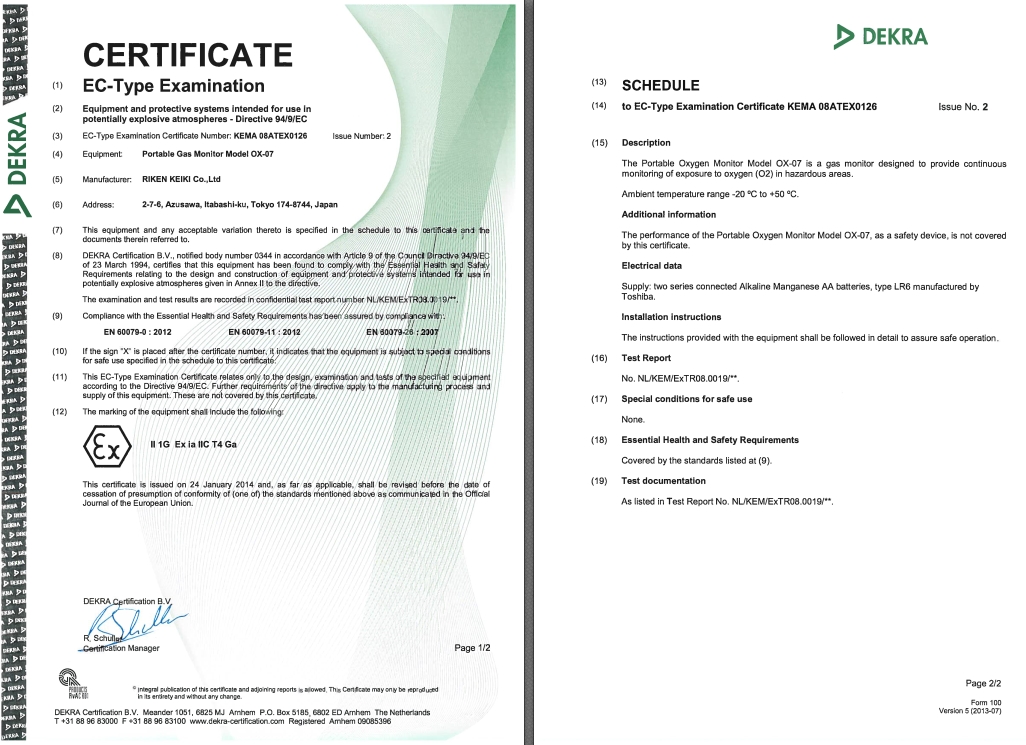 ATEX証 OX-07 KEMA08ATEX0126 Issue No.2