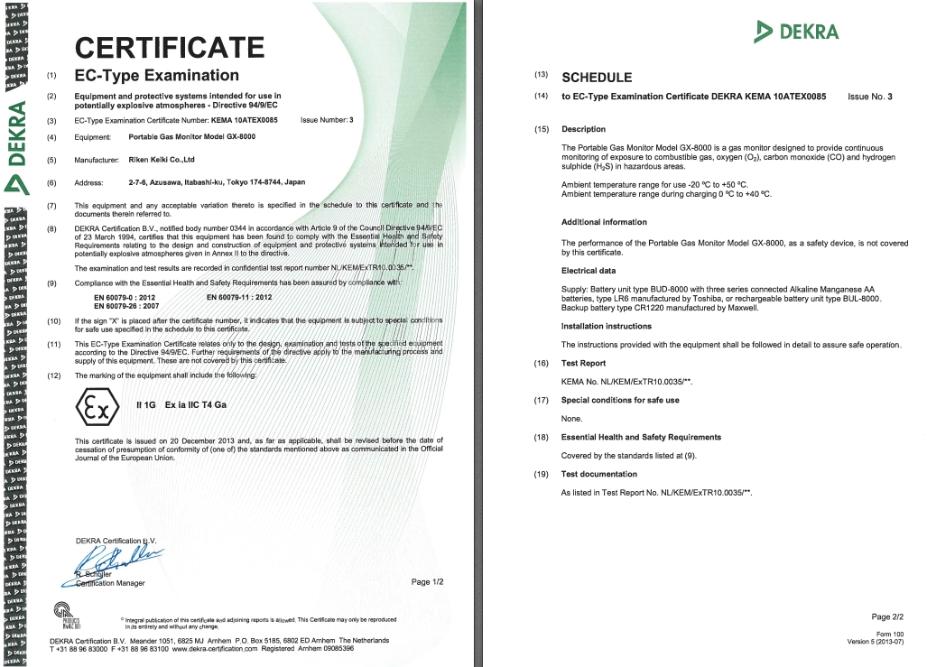 ATEX証 GX-8000 KEMA10ATEX0085 Issue No.3