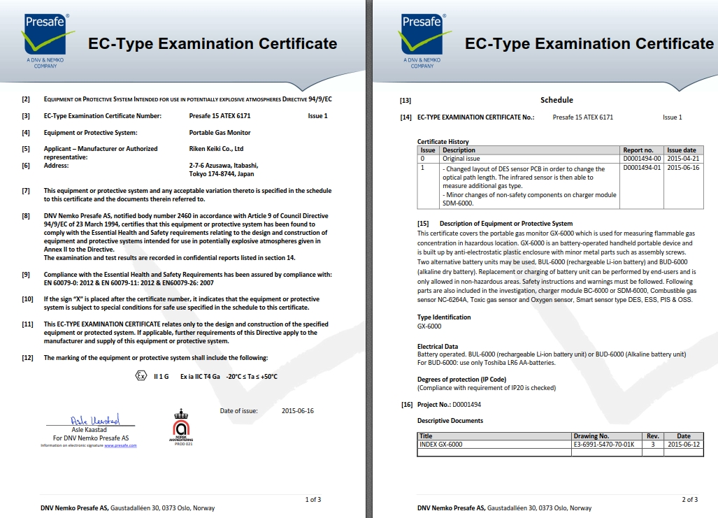 ATEX証 GX-6000 Presafe15ATEX6171 Issue No.1