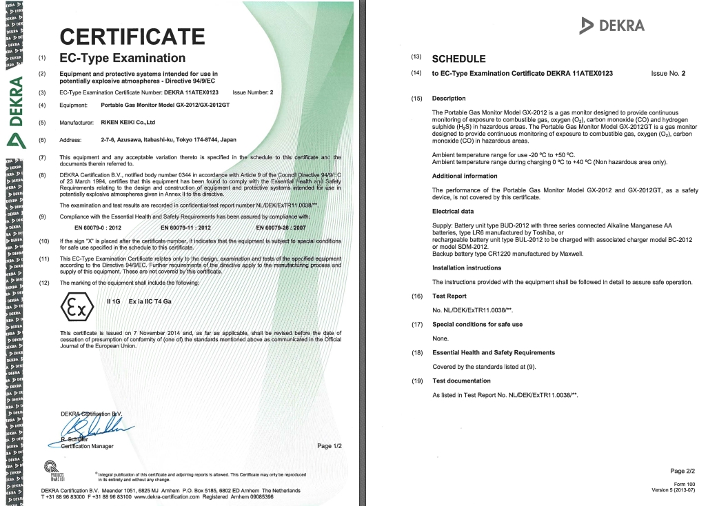 ATEX証 GX-2012,GX-2012GT DEKRA11ATEX0123 Issue No.2