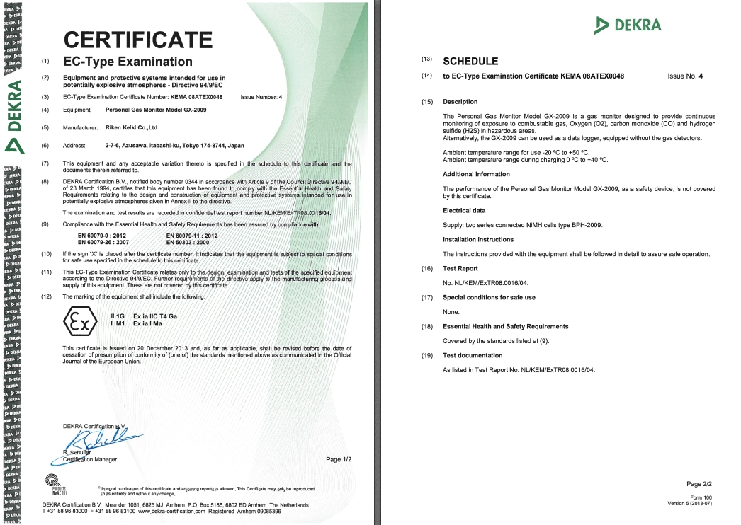 ATEX証 GX-2009 KEMA08ATEX0048 Issue No.4