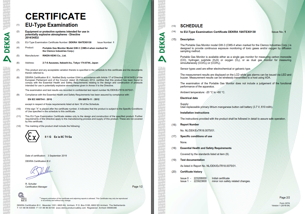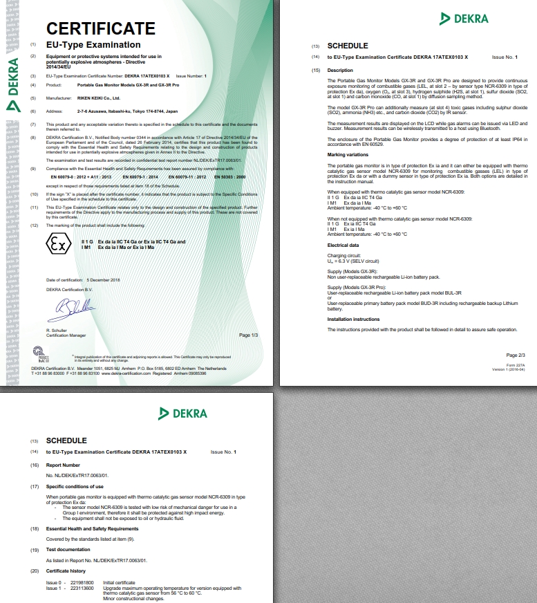 ATEX証 GW-3 DEKRA 18ATEX0130 Issue No.1