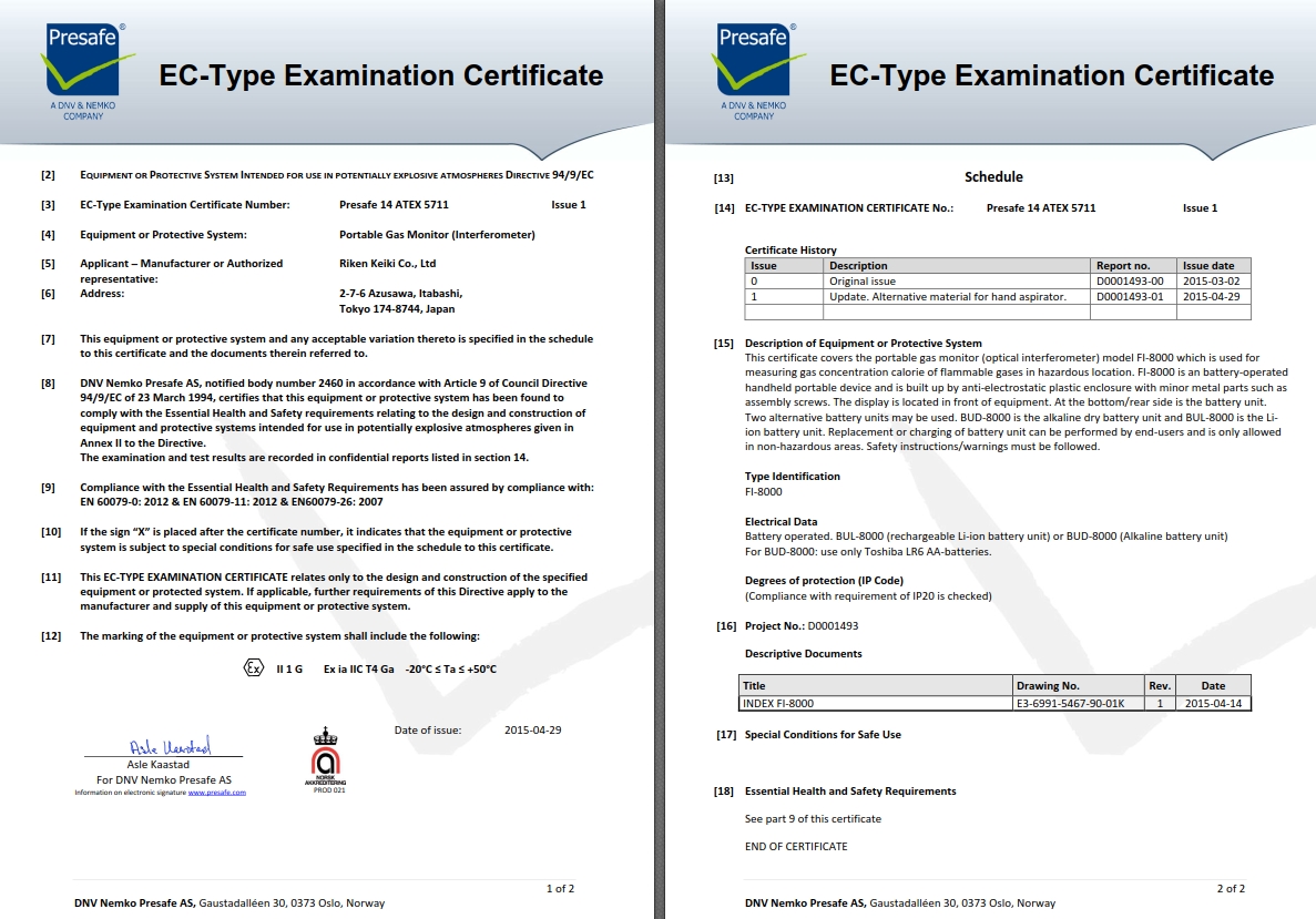 ATEX証 FI-8000 Presafe14ATEX5711 Issue No.1